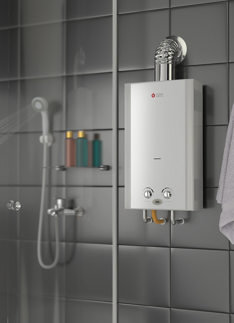Ταχυθερμοσίφωνας αερίου. Περιορισμένες διαστάσεις για οικονομία χώρου και χαμηλό βάρος. Ευκολία στην εγκατάσταση και απλότητα στη χρήση και στη συντήρηση. Αυτόματη ανάφλεξη με το άνοιγμα την βρύσης μέσω ηλεκτρονικού μηχανισμού. Δυνατότητα για ρύθμιση ισχύος παροχής αερίου και χωρίς συνεχή φλόγα – πιλότο, για οικονομία στη χρήση. Επιλογή ποσότητας παροχής νερού για την τήρηση μια σταθερής ροής σε περίπτωση εναλλαγών στην πίεση τροφοδοσίας. Απλή και ευανάγνωστη οθόνη υγρών κρυστάλλων. Χωρίς ηλεκτρική εγκατάσταση. Χωρίς ηλεκτρικό ρεύμα. Ντούς πολλαπλών ροών. Πρεσοστάτης για προστασία από διακοπές νερού. Βαλβίδα ασφαλείας(εκτόνωσης) για προστασία από υψηλή πίεση.